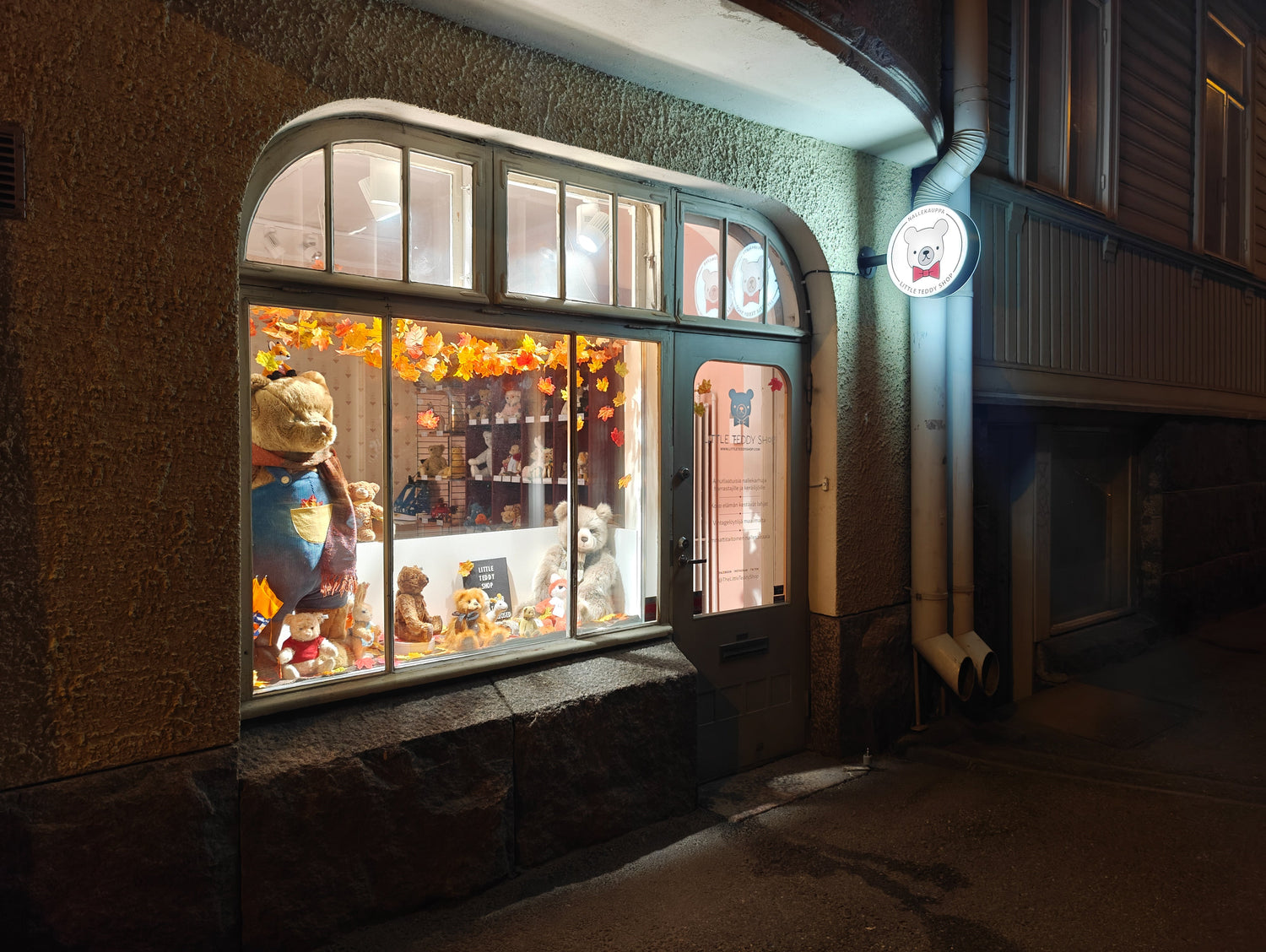 Tällä hetkellä Helsingin liikkeemme näyteikkunassa olevat nallet.