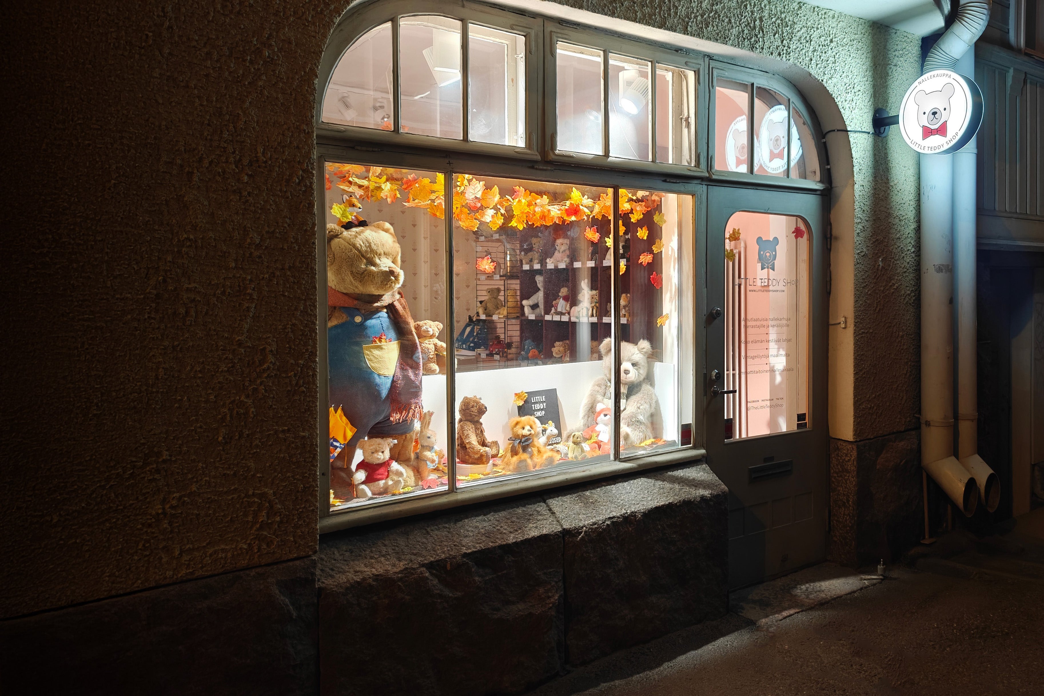 Tällä hetkellä Helsingin liikkeemme näyteikkunassa olevat nallet.